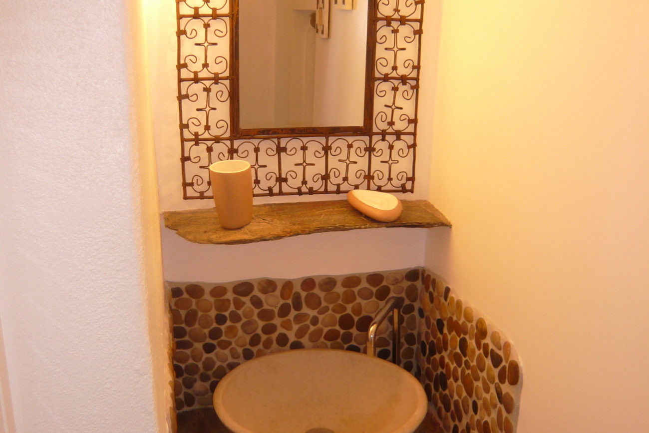 The decoration will disorient you with its charm and authenticity: an alliance of stones (lauze des Cévennes) and exoticism.